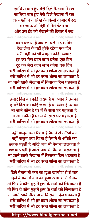 saathiya baat hue meri dile maikhane me rakh