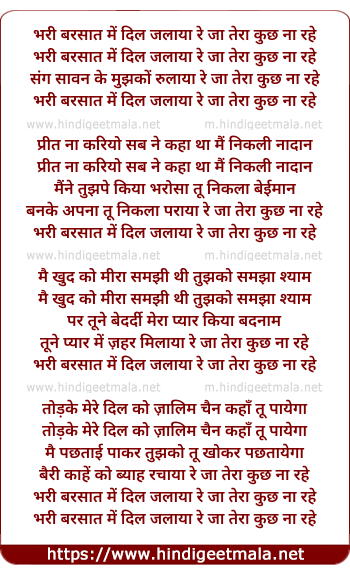 Lyrics of Bhari Barsaat Me Dil Jalaye - भरी बरसात में दिल जलाया