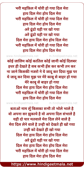 Lyrics of Bhari Mehfil Me Chori Ho Gayaa Hai - भरी महफ़िल में चोरी हो गया है