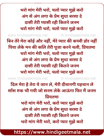 Lyrics of Bharo Mang Meri Bharo - भरो मांग मेरी भरो