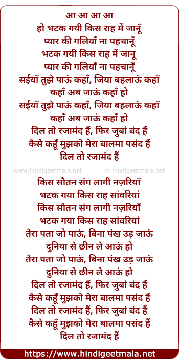 Lyrics of Bhatak Gayi Kis Raah Na Jano - भटक गयी किस राह में जानूँ