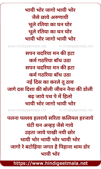 Lyrics of Bhayee Bhor Jaago Bhayee Bhor - भायी भोर जागो भायी भोर