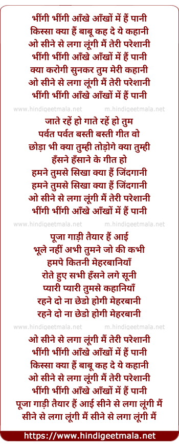 Lyrics of Bheegi Bheegi Aankhe Aankho Me Hai Pani - भींगी भींगी आँखे आँखों में हैं पानी