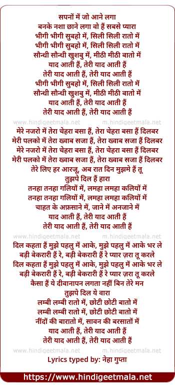 Lyrics of Bheegi Bheegi Subahon Mein - भीगी भीगी सुबहों में