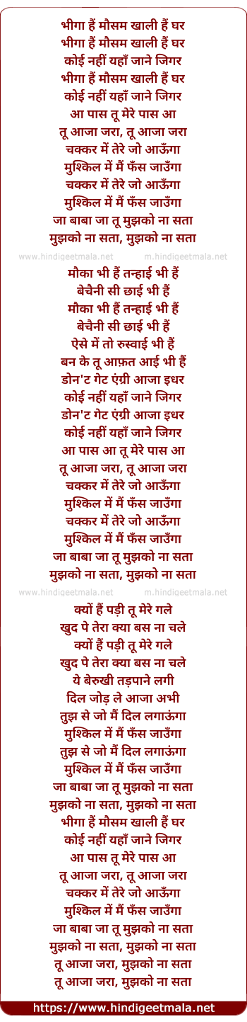 Lyrics of Bhiga Hai Mausam Khali Hai Ghar - भीगा हैं मौसम खाली हैं घर