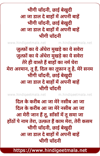 Lyrics of Bhigi Chaandani Chhaai Bekhudi Aa Jaa Daal De Baahon Men - भीगी चाँदनी छाई बेखुदी आ जा डाल दे बाहों में
