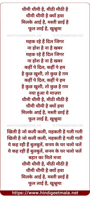 Lyrics of Dhimi Dhimi Hai, Mithi Mithi Hai - धीमी धीमी है, मीठी मीठी है