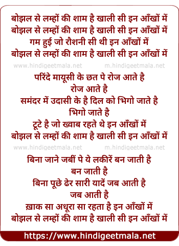Lyrics of Bhojhaal Se Lamhon Ki Sham Hai - बोझल से लम्हों की शाम है