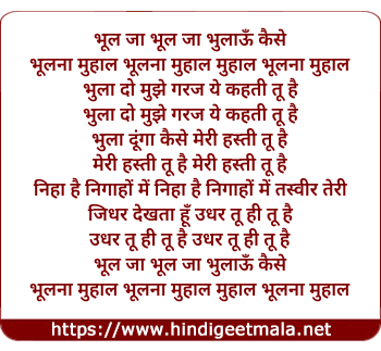 Lyrics of Bhool Ja Bhool Ja Bhulau Kaise Bhulna Muhaal - भूल जा भूल जा भुलाऊँ कैसे भूलना मुहाल