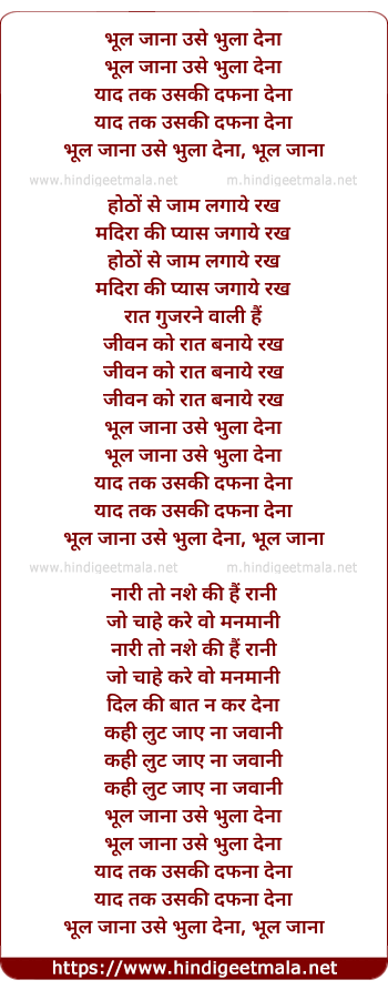 Lyrics of Bhool Jaana Use Bhula Dena - भूल जाना उसे भुला देना