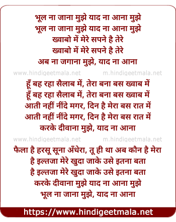 Lyrics of Bhool Na Jaana - भूल ना जाना