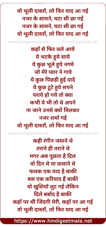 Lyrics of Bhooli Dastaan - भूली दास्ताँ