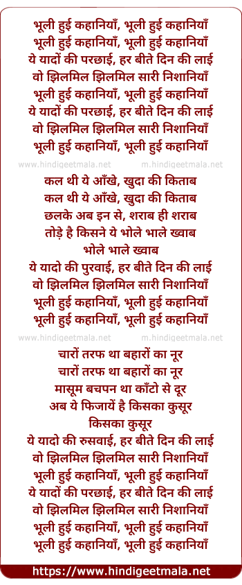 Lyrics of Bhooli Hui Kahaniya - भूली हुई कहानियाँ