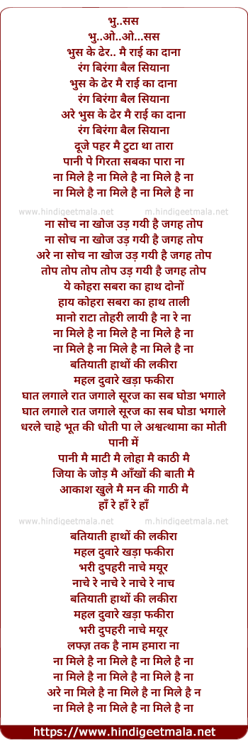 Lyrics of Bhoos Ke Dher Me Rayi Kaa Dana - भुस के ढेर में राई का दाना