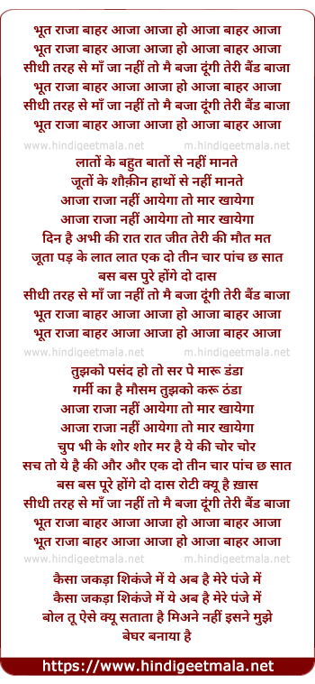 Lyrics of Bhoot Raja Bahar Aaja - भूत राजा बाहर आजा