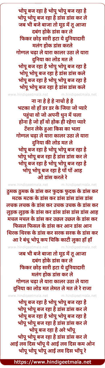 Lyrics of Bhopu Baj Raha Hai - भोपू बज रहा है