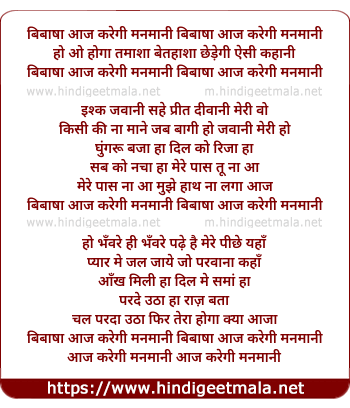 Lyrics of Bibasha Aaj Karegi Manmani - बिबाषा आज करेगी मनमानी