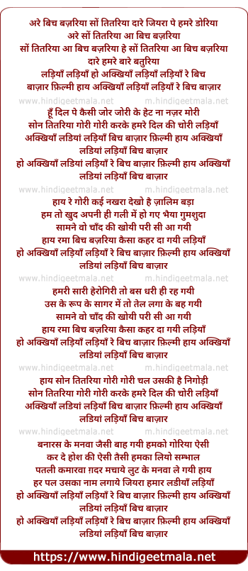Lyrics of Bich Bazariyaa Soni Titariya - बिच बज़रिया सोणी तितरिया