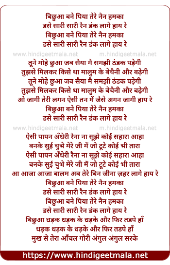 Lyrics of Bichuva Bane Piya Tere Nain - बिछुआ बने पिया तेरे नैन