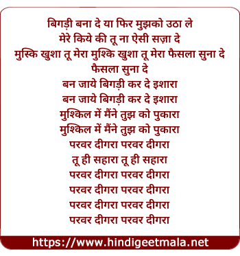 Lyrics of Bigdi Bana De - बिगड़ी बना दे