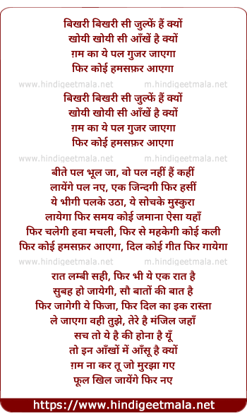 Lyrics of Bikhari Bikhari Si Julfe Hai Kyu - बिखरी बिखरी सी जुल्फें हैं क्यूँ