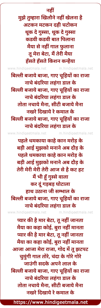 Lyrics of Billi Bajaaye Baaja, Gaye Chuhiyo Ka Raja, Nache Bandriya Lahnga Daal Ke - बिल्ली बजाये बाजा, गाए चूहियों का राजा नाचे बंदरिया लहंगा डाल के