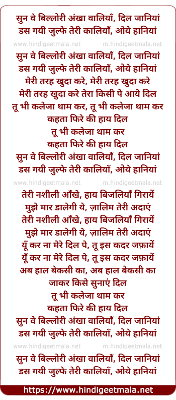 sun ve billori ankha waaliya, dil jaaniya