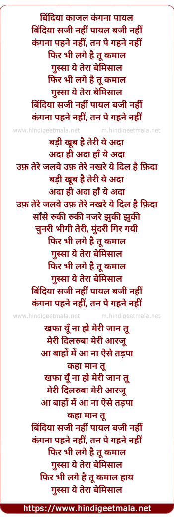 Lyrics of Bindiya Saji Nahi Payal Baji Nahi - बिंदिया सजी नहीं पायल बजी नहीं
