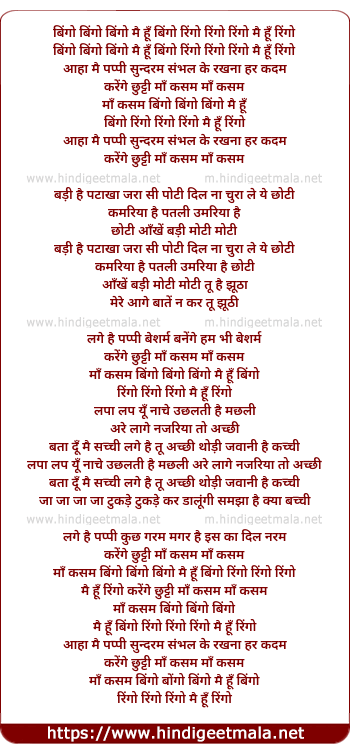 Lyrics of Bingo Bingo Bingo Main Hu Bingo - बिंगो बिंगो बिंगों मैं हूँ बिंगो