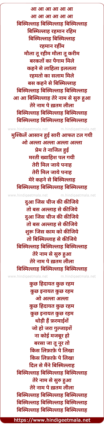 Lyrics of Bismillah - आ आ आ आ आ आ