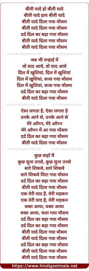 Lyrics of Bitee Yaade Ho Bitee Yaade - बीती यादे हो बीती यादे
