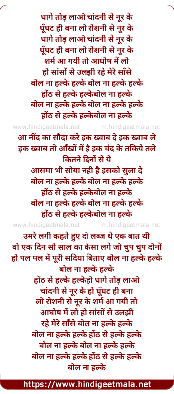 Lyrics of Bol Na Halke Halke Honth Se Halke Halke - बोल ना हल्के हल्के होंठ से हल्के हल्के