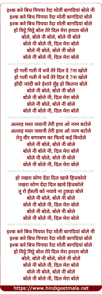 Bole Nee Bole - इश्क करे बिच पिपया रेंदा मोती बागदियां बोले नी