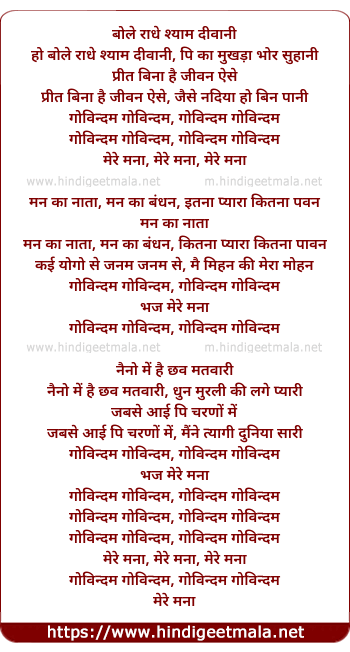 Govindam Govindam, Govindam, Bhaj mere mana,