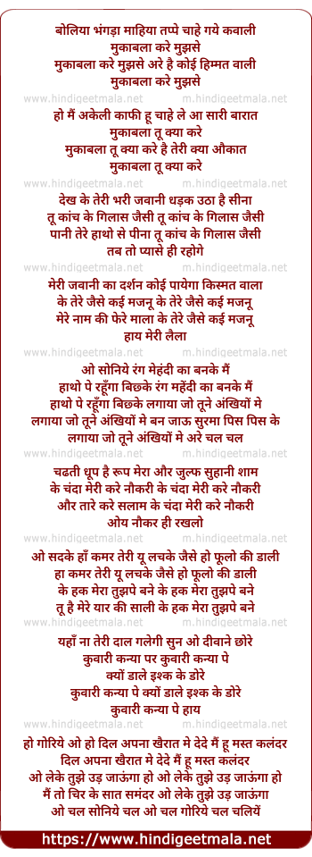 mukabla kare mujhse are hai koi himmat wali