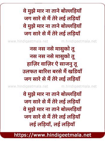 Lyrics of Bolladiyaan - वे मुझे मार ना ताने बोल्लादियाँ