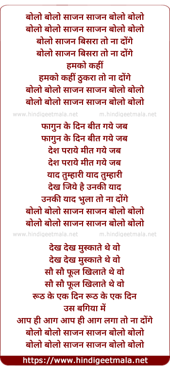 Lyrics of Bolo Bolo Sajan Sajan Bolo Bolo - बोलो बोलो साजन साजन बोलो बोलो