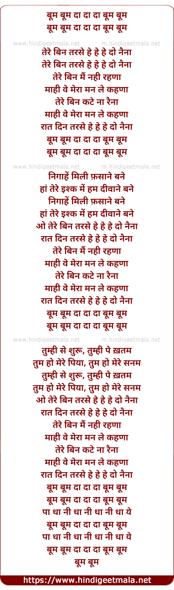 Lyrics of Boom Boom Da Da Da Boom Boom - बूम बूम दा दा दा बूम बूम