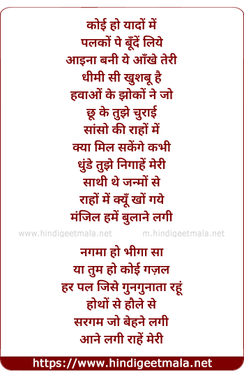 Poetic Translation - Lyrics of Boondein - कोई हो यादों में