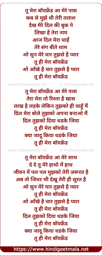 Lyrics of Boyfriend - बॉयफ्रेंड