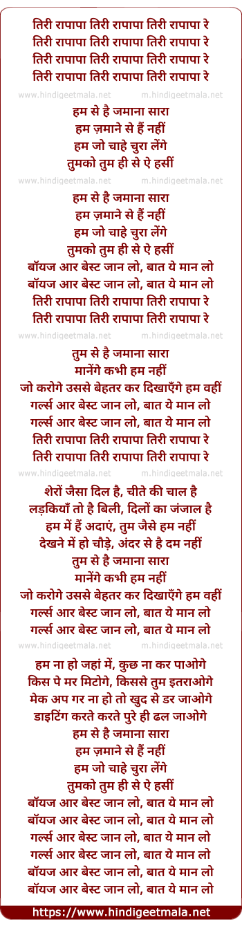 Lyrics of Boys Are Best Jaan Lo - बॉयज आर बेस्ट जान लो