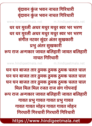 Lyrics of Brindavan Kunj Bhavan Nachat Giridhaari - वृंदावन कुंज भवन नाचत गिरिधारी