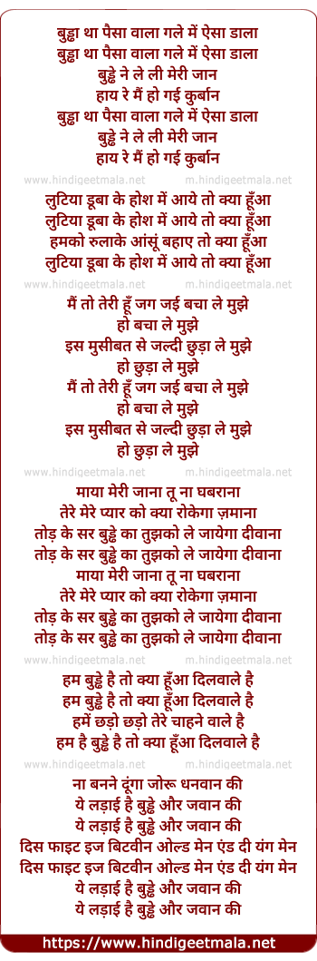 Lyrics of Buddha Tha Paisa Wala Gale Me Aisa Dala - बुड्ढा था पैसा वाला गले में ऐसा डाला