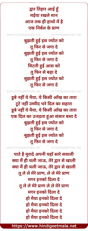 Lyrics of Bujhti Huvi Is Jot Ko - बुझती हुई इस ज्योत को