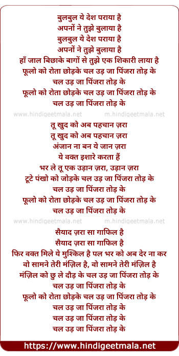 Lyrics of Bulbul Yeh Des Paraaya Hai - बुलबुल ये देश पराया है