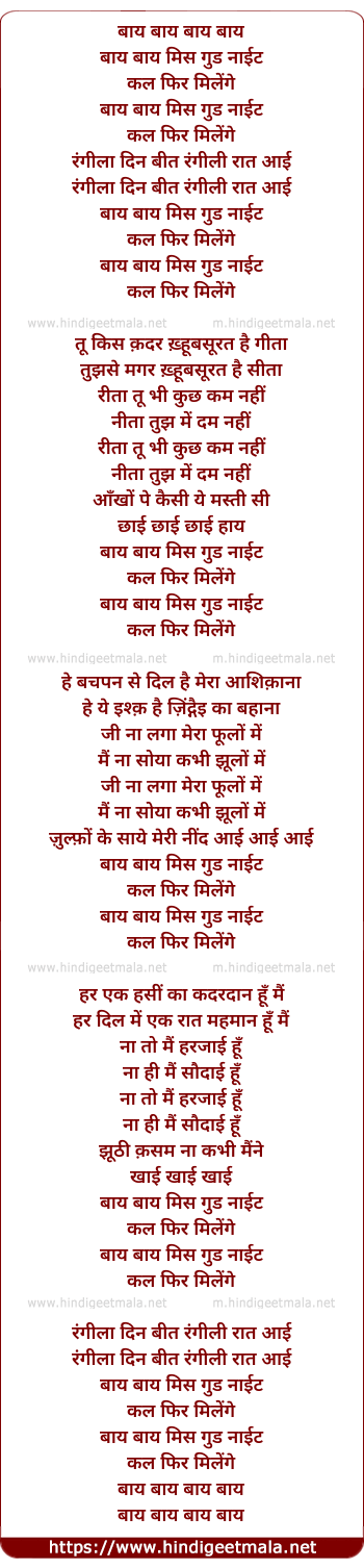 Lyrics of Bye Bye Miss Good Night Kal Phir Milenge - बाय बाय मिस गुड नाईट