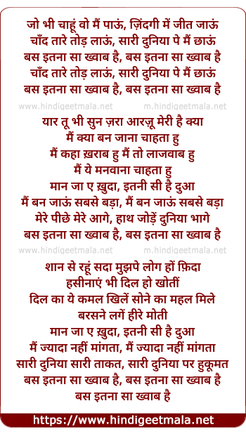 bas itna sa khwaab hai, bas itna sa khwaab hai