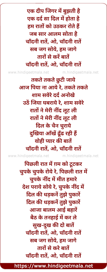 Lyrics of Chaandani Raaten - चाँदनी रातें
