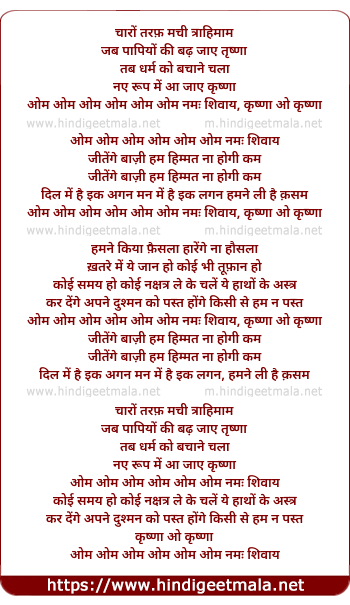 Lyrics of Chaaron Taraf Machi Traahimaam - चारों तरफ़ मची त्राहिमाम