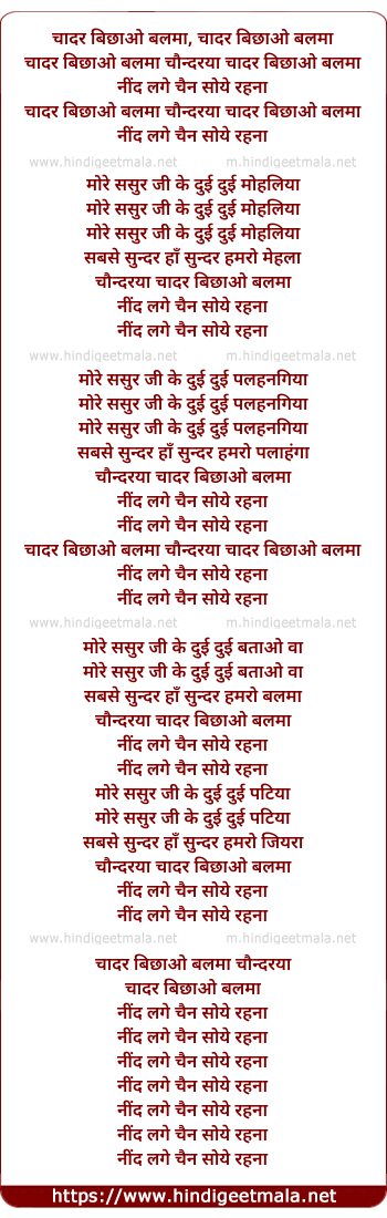 Lyrics of Chadar Bichhao Balma - चादर बिछाओ बालम